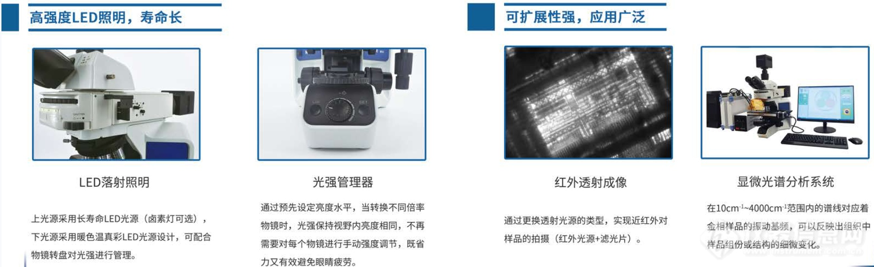 根據(jù)工業(yè)和材料學的不同應用,可以通過模塊化組合成明場反射觀察、明場透反射觀察以及偏光偏光等多種應用的顯微鏡。